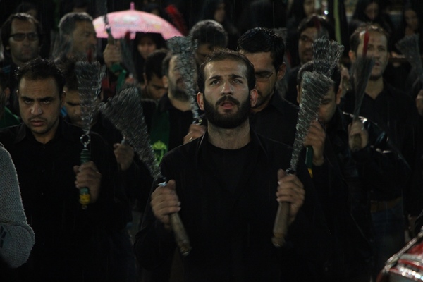 دسته عزاداری هیئت علی بن موسی الرضا (ع) عباس آباد آران و بیدگل در شب تاسوعای محرم 1437دز زیر باران رحمت الهی اقامه عزا نمود.