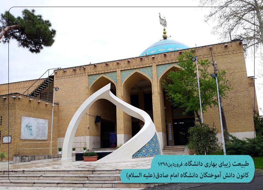 نمایی از مسجد و مقبرة الشهدای دانشگاه امام صادق(علیه السلام) در فصل بهار