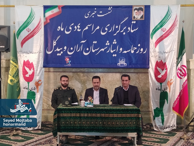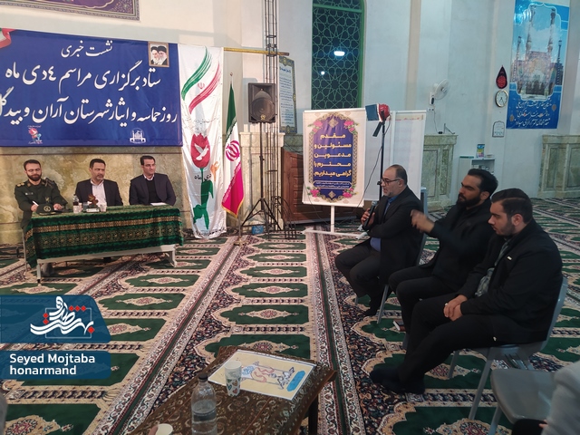 به گزارش خبرنگار طاووس بهشت؛ در آستانه ۴دیماه سالروز حماسه و ایثار شهرستان آران و بیدگل، نشست خبری علیاکبر رضایی فرماندار و رئیس شورای ترویج فرهنگ ایثار و شهادت،شامگاه سهشنبه ۲۸ آذرماه با حضور اعضای ستاد برگزاری مراسم و جمعی از اصحاب رسانه در حرم مطهر حضرت هاشمبنعلی (ع) و فاطمه بنتالعسکری(س) برگزار شد./عکس: سید مجتبی هنرمند