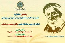 پنجمین جشنواره تقدیر از اساتید و دانشجویان برتر آموزش و پژوهش دانشگاه امام صادق(علیه السلام)یادواره آیت الله مهدوی کنی (رحمه‌الله) با تجلیل از چهره ماندگار علمی  دانشگاه امام صادق (علیه السلام) آقای دکتر مسعود درخشان برگزار می شود.