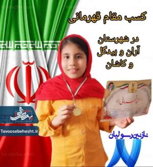 مدال طلا روی گردن شناگر دختر آران و بیدگلی