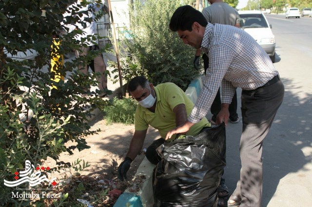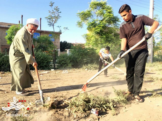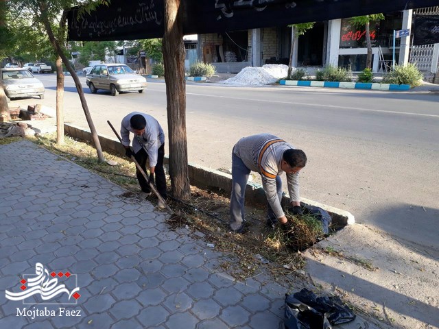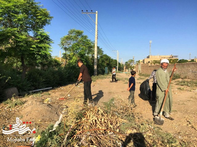 حرکت جهادگرانه اعضای محله عباس آباد در پاکسازی جوی های معابر