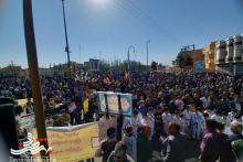 مردم غیور و همیشه در صحنه شهر آران و بیدگل از ساعت ۱۰ صبح در دو محل اصلی حرم مطهر حضرت محمدهلال بن علی(ع) و حرم مطهر هفت امامزاده(ع) تجمع خود را آغاز کردند و یکپارچه و متحد به سمت میدان سردار سلیمانی و مصلای نماز جمعه آران و بیدگل به راه افتادند.