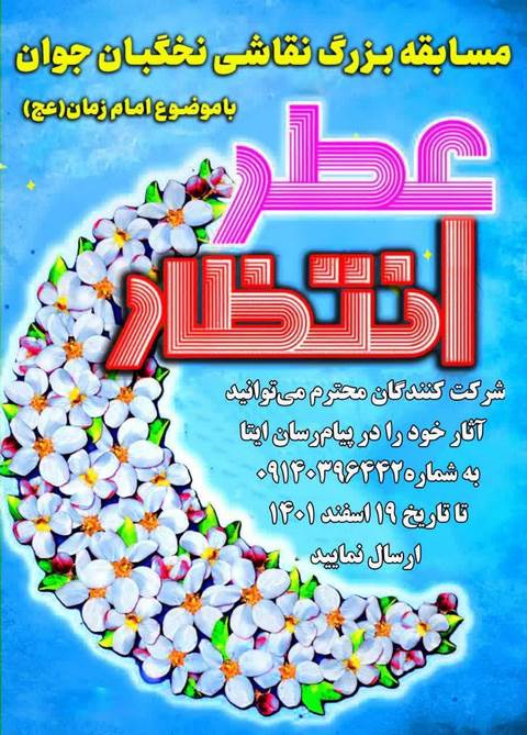 کانال نخبگان جوان مسابقه بزرگ نقاشی با موضوع امام زمان (عج) عطر انتظار ویژه کودکان و نوجوانان بر گزار می کند.
