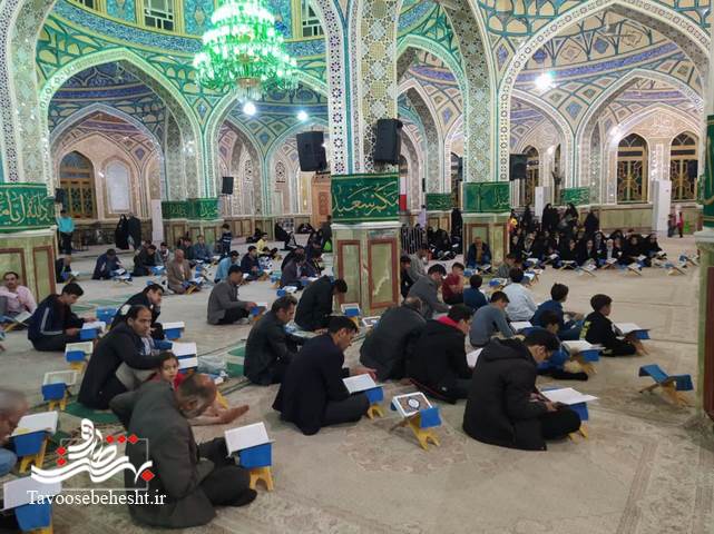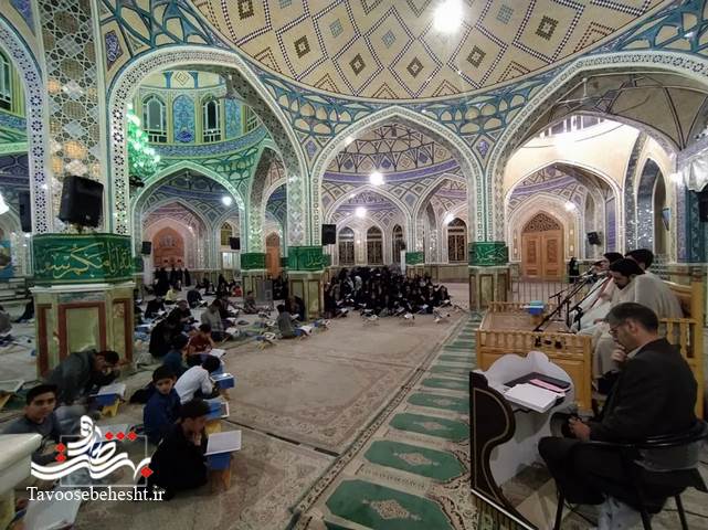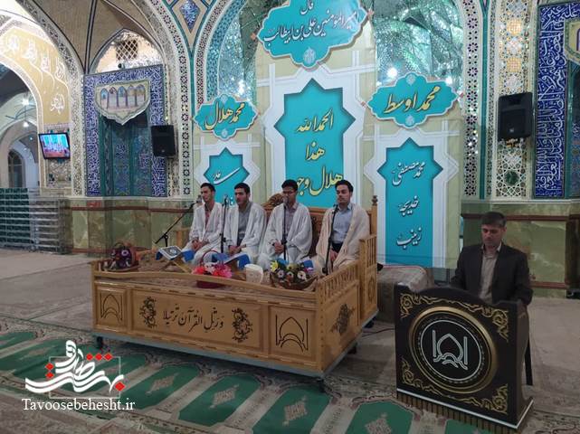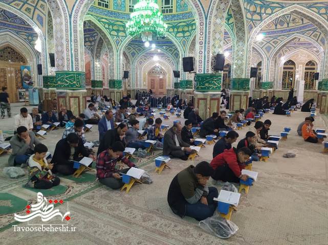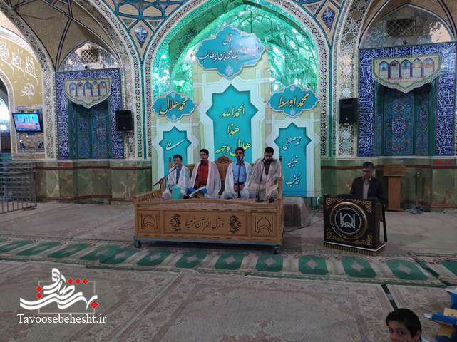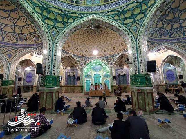 به گزارش خبرنگار طاووس بهشت؛مراسم "جزءخوانی" به روش "حفظ خوانی" هر شب ماه مبارک رمضان در حرم مطهر حضرت محمدهلال بن علی (ع) با حضور حافظان و قاریان ممتاز و بین المللی برگزار می گردد./عکس: روابط عمومی حرم مطهر حضرت محمد هلال ابن علی (ع)