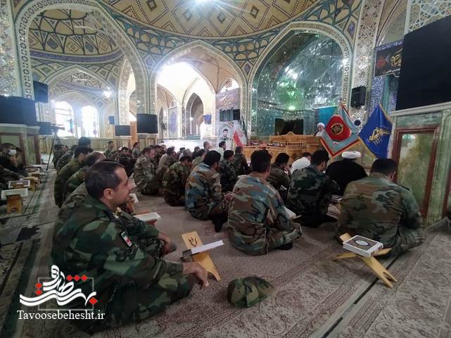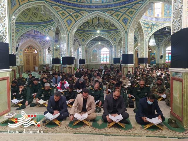 به گزارش خبرنگار طاووس بهشت؛محفل انس با قرآن کریم نیروهای مسلح بمناسبت هفته ارتش و سالروز شهادت سپهبد شهید علی صیاد شیرازی با حضور قاریان ممتاز کشوری و لشکری برگزار شد./عکس:روابط عمومی آستان مقدس حضرت محمدهلال بن علی (ع)