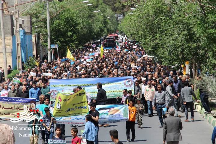 به گزارش خبرنگار طاووس بهشت؛راهپیمایی روز قدس با حضور پرشور مردم روزه دار دارالشهدا آران و بیدگل برگزار شد./عکس:محمد طاها نمکی