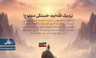 به گزارش خبرنگار طاووس بهشت؛ ما فصل مشبعی را حرکت کردیم. این سربالایی، این شیب تند را عبور کردیم، به قلهها نزدیک شدیم. نباید خسته بشویم. امروز روز خسته شدن نیست، روز ناامید شدن نیست. امروز روز شوق است، روز امید است، روز حرکت است. مسئولین کشور در بخشهای مختلف باید با این روحیه حرکت کنند.