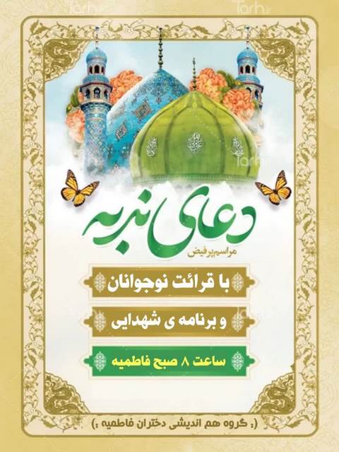 مراسم صبحگاهی دعای ندبه ویژه نوجوانان همراه با صرف صبحانه و برنامه ی کوتاه شهدایی برگزار می شود.