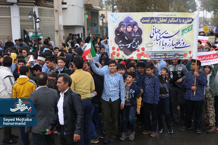 به گزارش خبرنگار طاووس بهشت؛دانش آموزان آران و بیدگلی پرشور و با شگوه در راهپیمایی سیزده آبان ماه شرکت کردند./عکس:سید مجتبی هنرمند