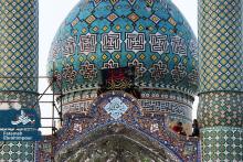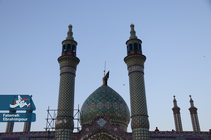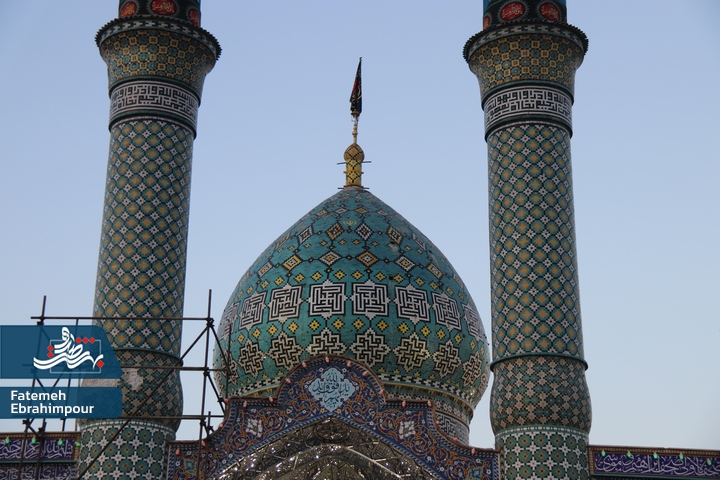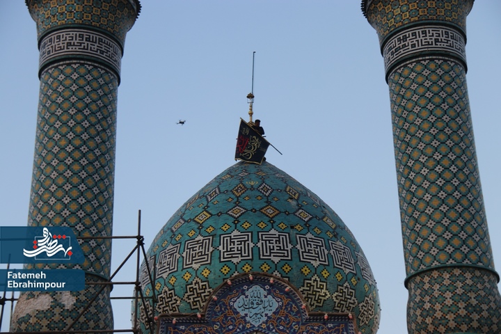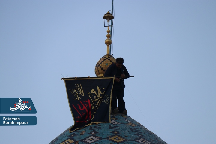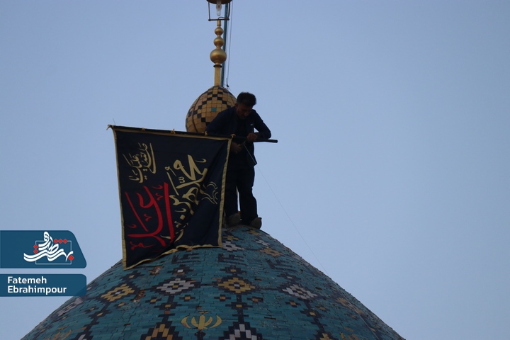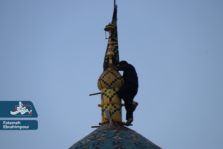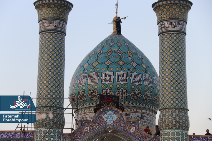 پرچم گنبد فیروزه ای حضرت محمد هلال بن علی (ع) بمناسبت ایام فاطمیه تعویض شد