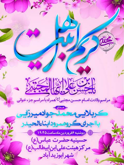 به گزارش خبرنگار طاووس بهشت؛ همزمان با فرا رسیدن نیمه ماه مبارک رمضان و میلاد کریم اهلبیت امام حسن مجتبی(ع) مراسم جشنی با اجرای برنامه های متنوع همراه با مراسم جزء خوانی قرآن کریم و با نوای گرم کربلایی محمد جواد میرزاییو اجرای گروه سرود ابناء الحیدربرگزار میگردد.