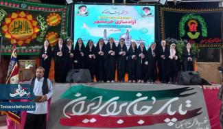 اعضای گروه، با چهرهای شاد و قلبی سرشار از عشق و ایمان، سرودهای زیبایی در وصف کریمه اهل بیت(ع) خواندند.