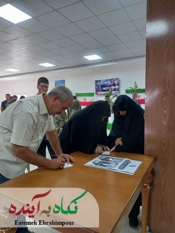 به گزارش خبرنگار طاووس بهشت؛ صندوق رای در پادگان شهید کبریایی برپا شد وپرسنل، نیروهای وظیفه و خانواده آنان استقبال کردند./عکس:فاطمه ابراهیم پور
